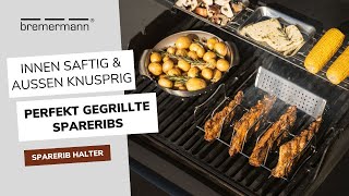 Rippchen grillen leicht gemacht! Mit der bremermann Halterung wird Ihnen Freude und Vergnügen garantiert sein. Sie können die Spareribs sicher hochkant auf den Grillrost stellen. Ein lästiges Wenden ist zukünftig nicht mehr erforderlich. Zudem bleibt auf dem Grillrost mehr Platz für andere Grillware.